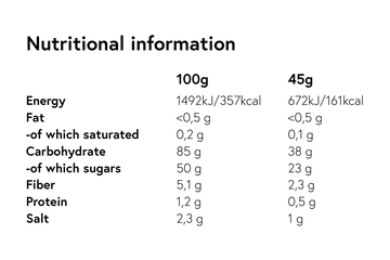 Icing sugar*, maltodextrin*, freeze-dried fruit (black currant 14,5 %), sea salt, acidity regulator (malic acid).